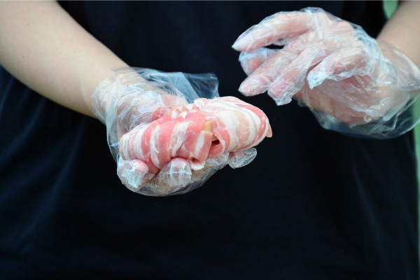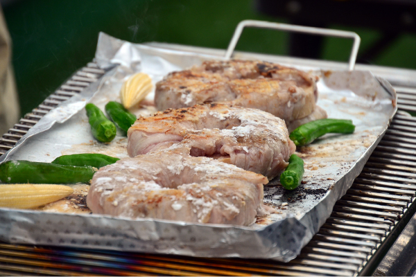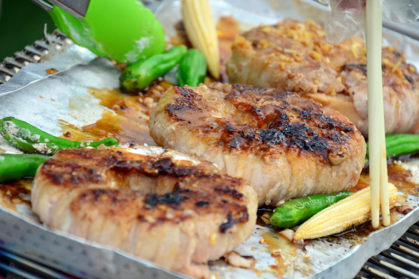 焦げ付きにくい焼きそばシートに油をひき、肉・ししとう・ヤングコーンを入れて蓋をして焼く。