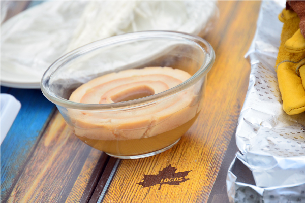 車麩を30分ほどだし汁に浸して戻す。お麩が柔らかくなったら取り出して水気を絞る。
