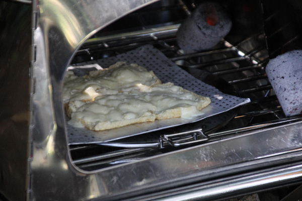 油揚げにチーズをのせ、KAMADO EMiwaで焼く。
