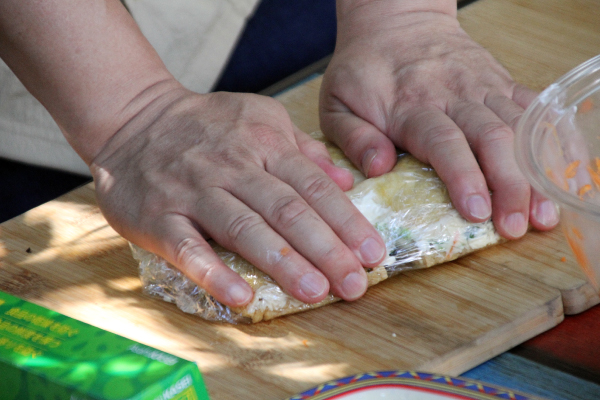 油揚げを重ねラップできつく包む。
