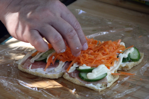上からにんじんとちぎったレタスをのせる。