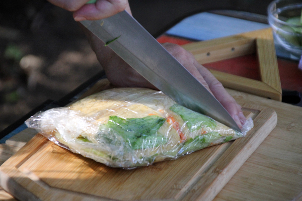 包丁で食べやすい大きさにカットすれば完成。
