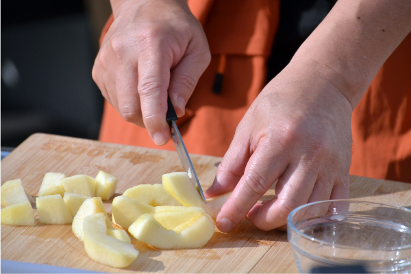 りんごは皮を剥き1cm大にカットする。