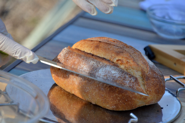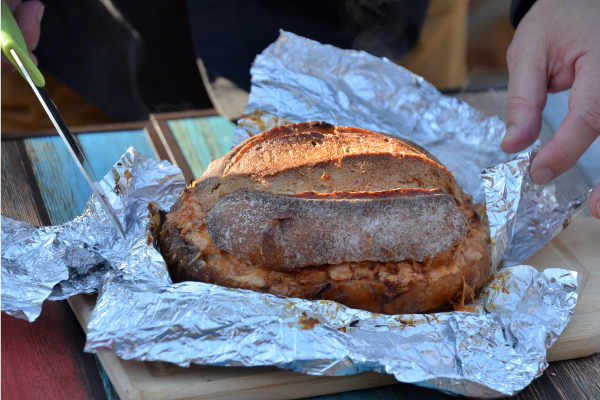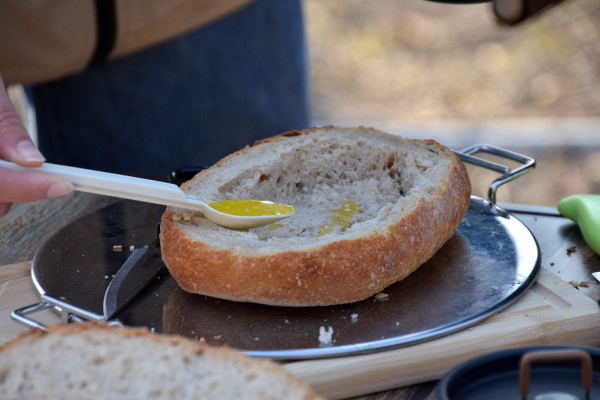 カンパーニュの上部をカットして蓋を作る。