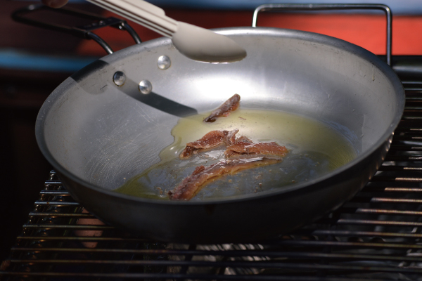 フライパンに油をしき、アンチョビを加えたら弱火で炒める。