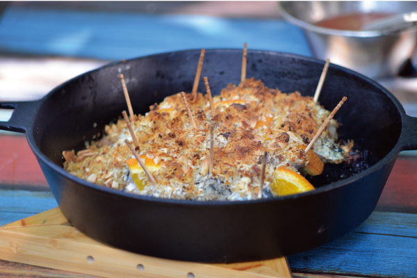 180℃に熱したKAMADOで10分程度焼き、最後にイタリアンパセリをかけたら完成。